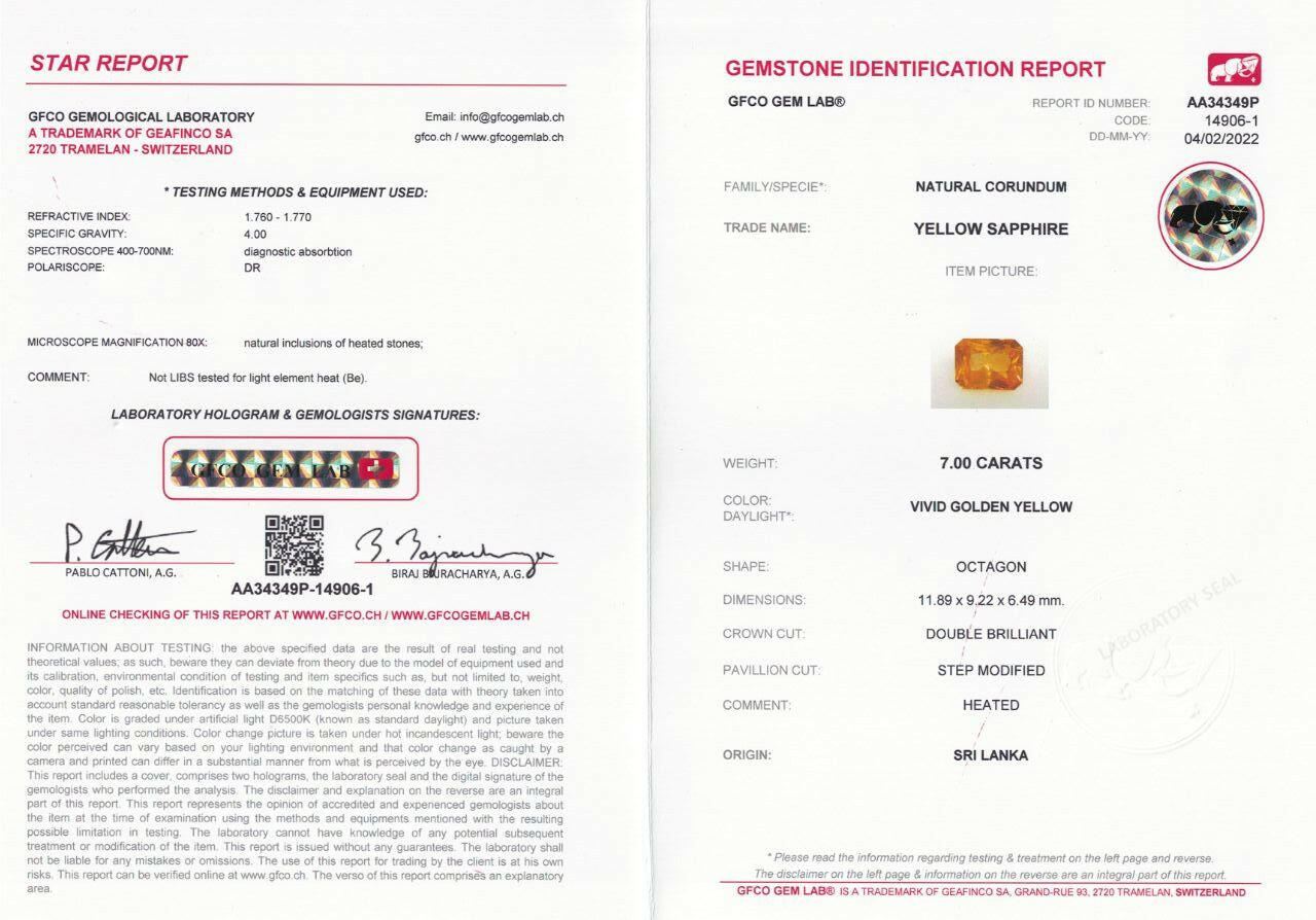 Behold the stunning allure of our Yellow Sapphire, a magnificent gemstone with a substantial weight of 7.00 carats. This extraordinary gem showcases a rich yellow hue that exudes warmth and vibrancy, making it a remarkable addition to your collection.